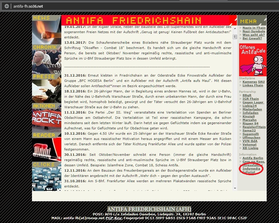 Von Antifa Friedrichhain geht’s dann direkt zu linksunten.indymedia.org (mittlerweile offline):
